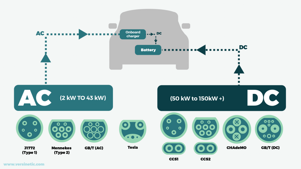 - DC Charging is for 50-150kW (The larger the battery system to higher charge rates required)